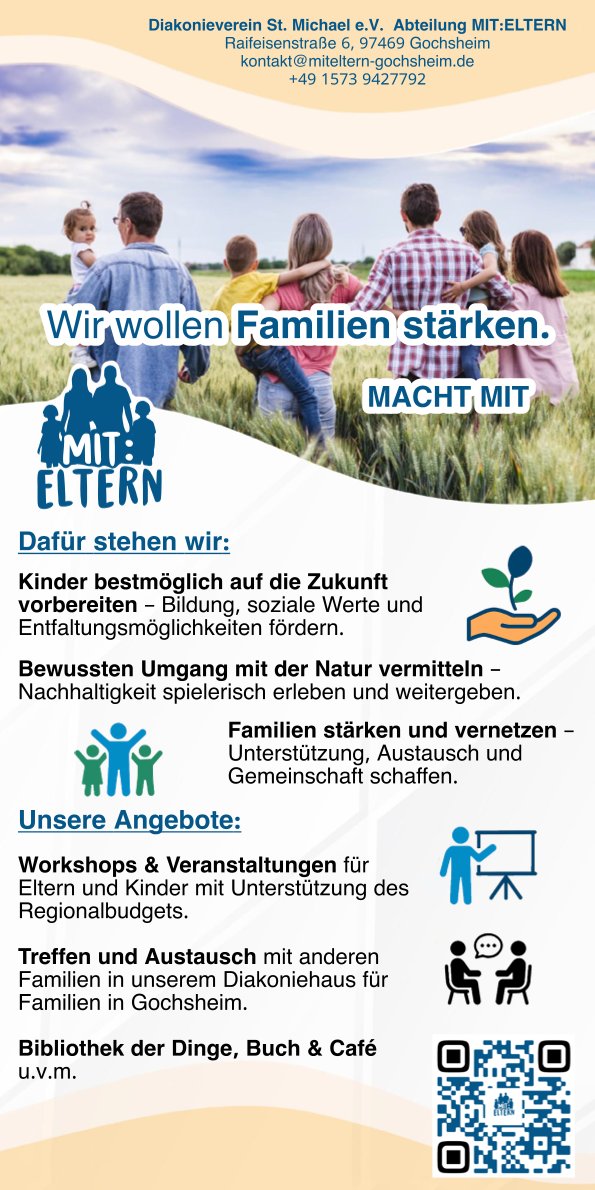 Das Projekt „mit Eltern“ in Gochsheim hat das Zielt zusammen mit Eltern innovative, kommunale Veränderungsprozesse für Familien in Gochsheim zu gestalten.